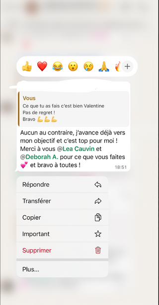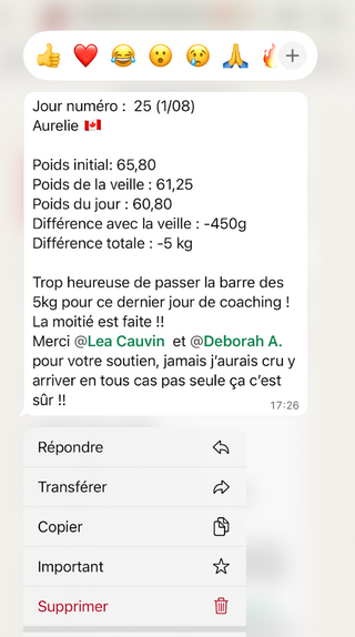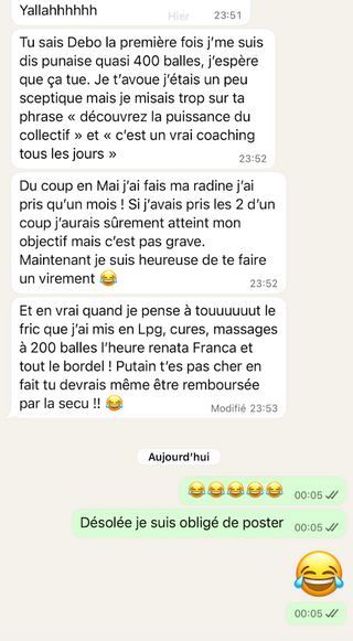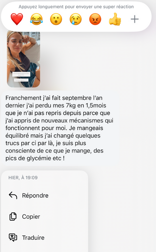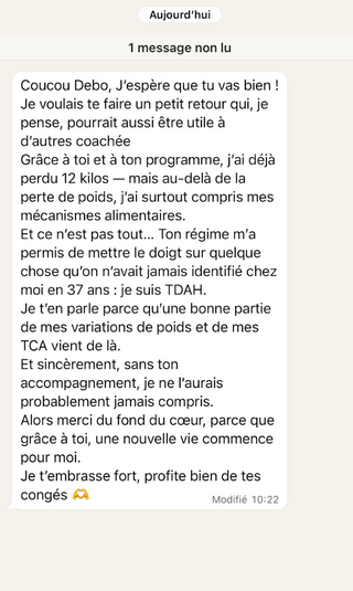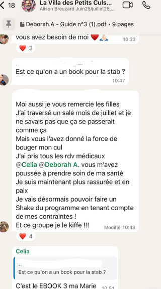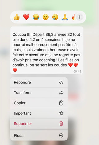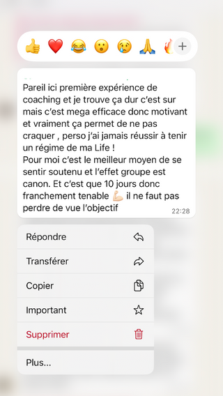 Un mois pour reprendre le contrôle, poser des bases solides, arrêter les craquages et retrouver une vraie stabilité. Tu avances avec un cadre clair, un groupe qui te soutient et une coach qui t’accompagne tous les jours.